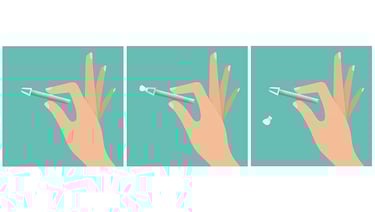 The specialized sticks will be around the size of a pinky finger. They let the users pick up and lock the tips in place. The sticks fix and discard with a gentle squeeze.