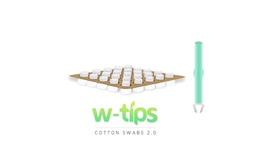 The patent-pending solution to these issues is w-tips: Pick up a fresh tip with the specialized stick, use it, then discard the used tip to decompose and keep the stick. Don't waste plastic or cotton, be kind to yourself and the planet.