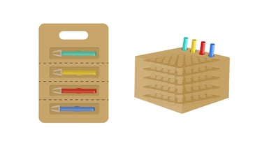 An example of the final product is shown. The sticks will come in unique colors for personal use, and there will be compartments to keep the sticks organized.